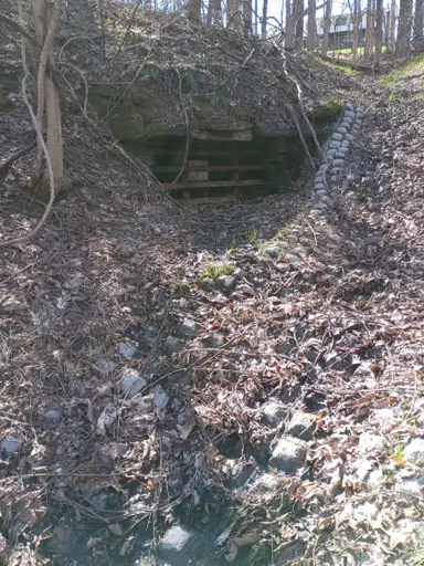There are two signs mounted n there, warning about the dangers of cave collapse and saying this is a protected habitat for bats.