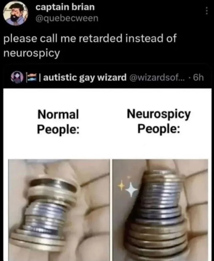Seriously though. Neurospicy is such a cringe fucking word.