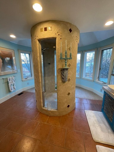 Why is there a vase in the doorway to the shower?!