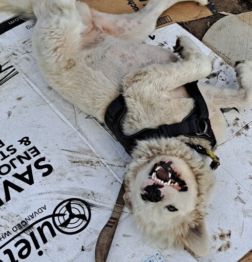 I’m working on a planter, and I’m using card board as an anti weed barrier. For some reason, she loves that cardboard stank.
