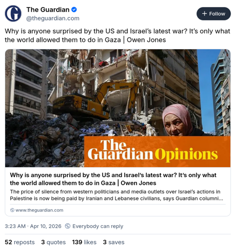 arrow-up10arrow-down1imageWhat is happening right now is a religious war, a holy war being waged by slaves based on self-loathing. Israelis are Arabs.lemmy.worldLearnToCode@lemmy.world to Microblog Memes@lemmy.worldEnglish · 16 days agomessage-square9linkfedilink