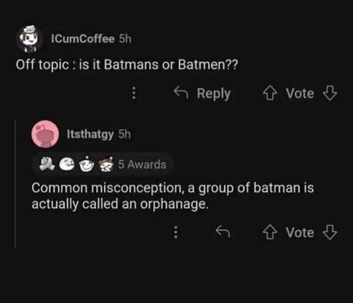 Dav09@mander.xyz to Reddit@lemmy.worldEnglish · 6 months agoBatmenmander.xyzimagemessage-square0linkfedilinkarrow-up10arrow-down10