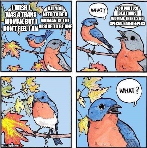 I had plenty of signs, but I took every instance where I didn’t relate to other transfems as evidence of being cis. I was afraid of not actually being trans and making a mistake. I wanted to be totally certain, not realizing that coming out requires a leap of faith for most.