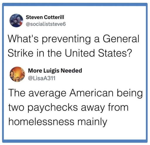 arrow-up10arrow-down1imageWhat's preventing a General Strike in the United States?lemmy.ml☆ Yσɠƚԋσʂ ☆@lemmy.mlM to United States | News & Politics@lemmy.mlEnglish · 29 days agomessage-square6linkfedilink